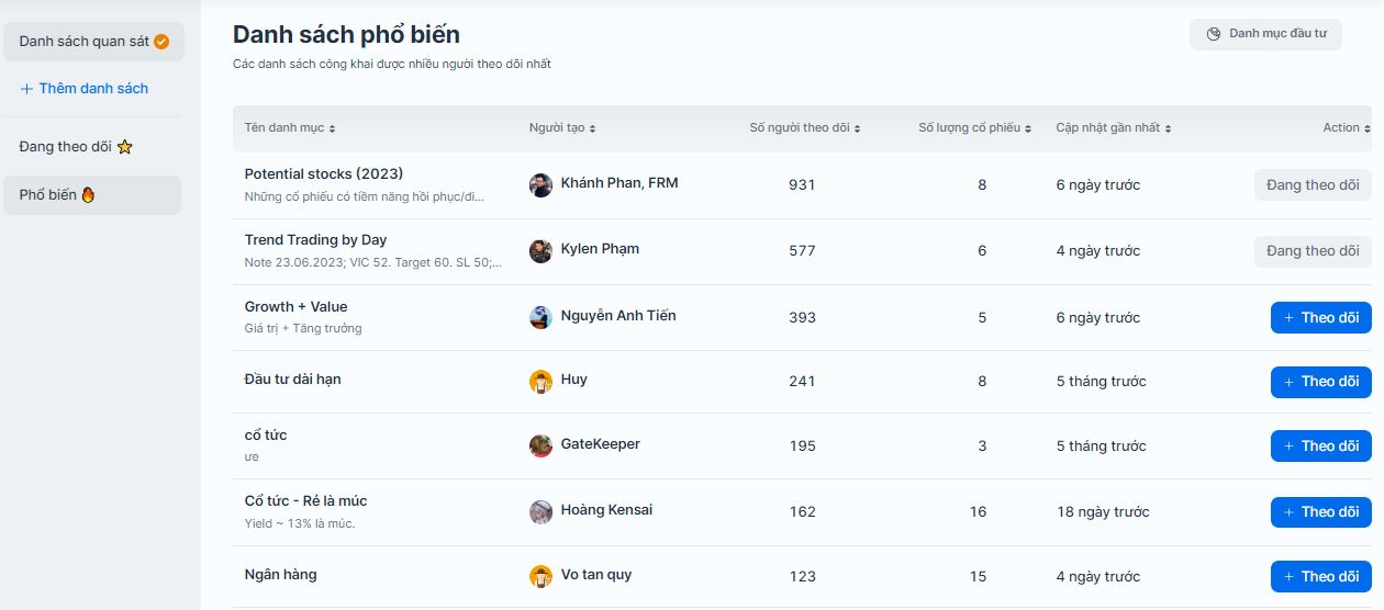 Tại đây, nhà đầu tư có thể chia sẻ và theo dõi danh mục cổ phiếu của nhau