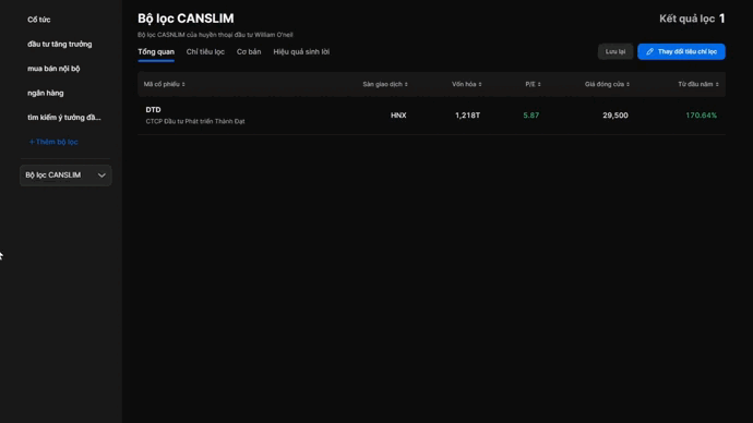 Cho phép bạn truy lùng ra cổ phiếu tốt nhất một cách nhanh chóng